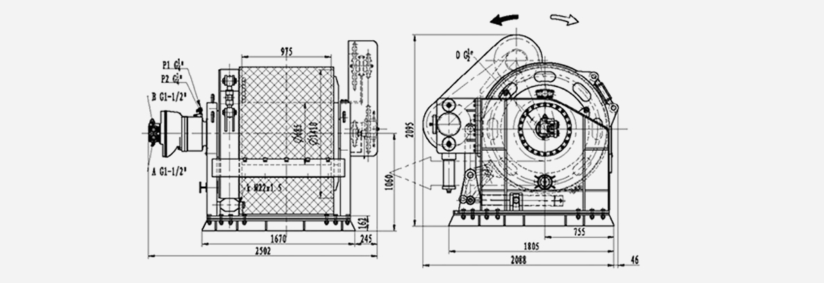 Kotevní naviják řady J---C jsou patentované produkty naší společnosti. Skládají se z bloků ventilů s funkcí ochrany proti přetížení, hydromotoru (elektromotor s brzdou), planetové převodovky, řemenové brzdy, zubové spojky, hlavy bubnu, rámu atd. Díky tomu, že se hodí k ventilovému bloku, se nejen zjednodušila konstrukce hydraulického systému, ale také se zlepšila spolehlivost pohonů. Řada navijáků by mohla mít funkci CT, pokud je vybavena ventilem s konstantním napětím, řada má také vysokou účinnost spouštění a pracovní efektivitu. Ve srovnání s tradičním kotvením je navíc celková přenosová účinnost této řady vylepšena o 6~10 % a ztráta energie je nižší kvůli uzavřené planetární