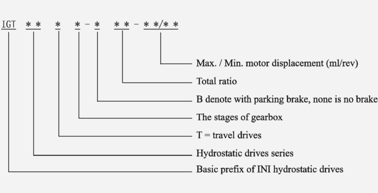 | Max. Výstupní točivý moment | Max. Celkový výtlak | Max. Zdvih motoru | Převodový poměr | Max. Rychlost | Max. Poměr | Max. Tok | Max. Tlak | Mše | Použitelná hmotnost vozidla |